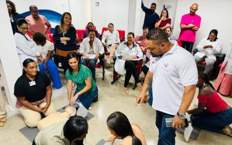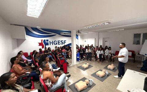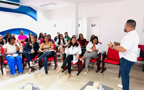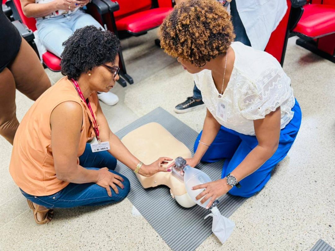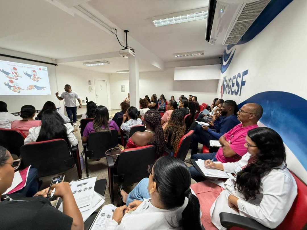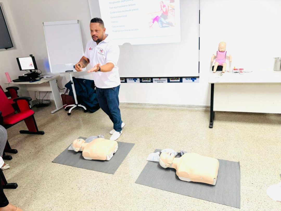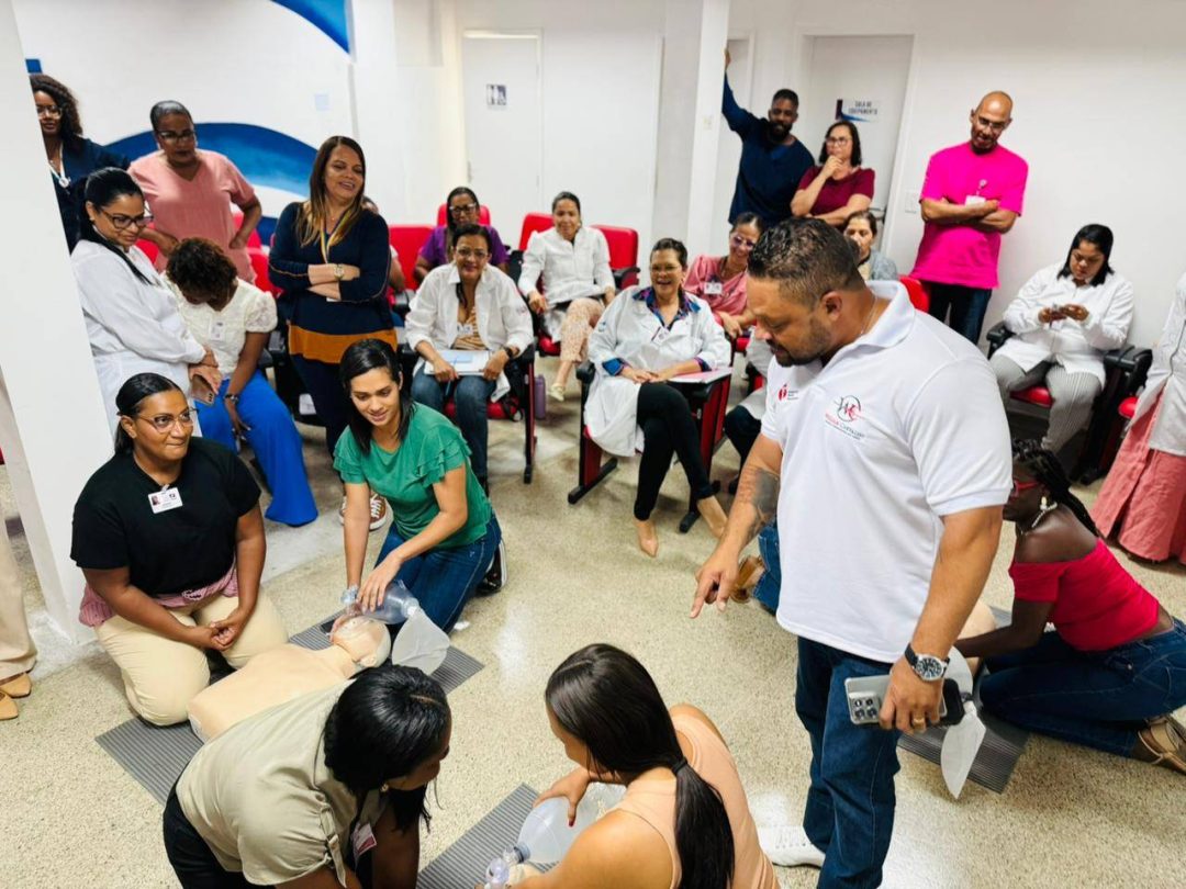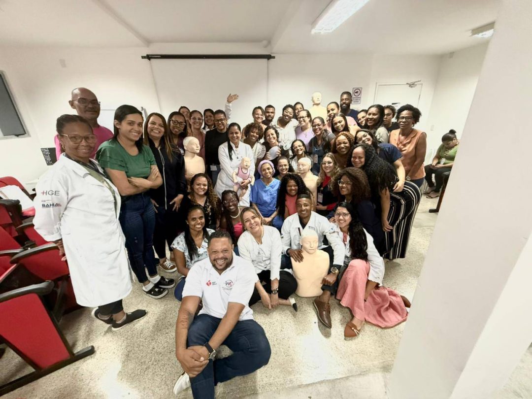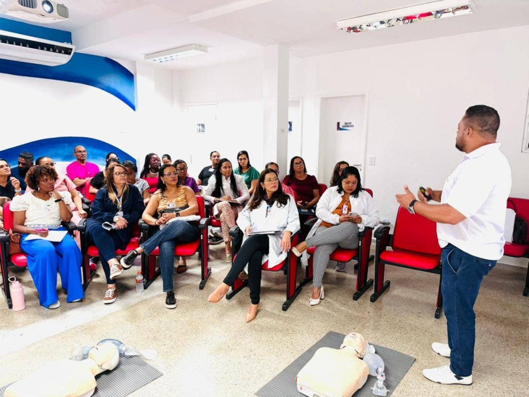 Em parceria com o Hospital Geral Ernesto Simões Filho, 50 profissionais de Enfermagem participaram de um treinamento teórico e prático, com simulações realistas e uso do desfibrilador externo automático (DEA), conduzido pelo Dr. Willian Neves.