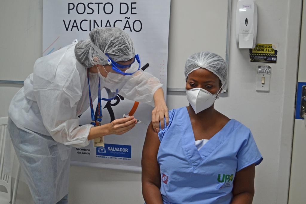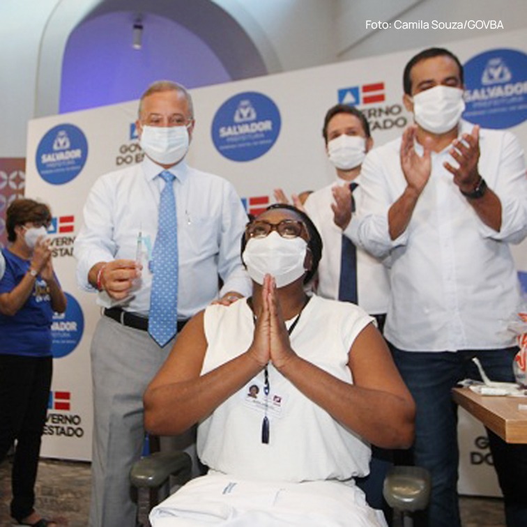 Começou, nesta terça-feira (19), a campanha de vacinação contra o novo Coronavírus, um momento histórico para a saúde da Bahia. A colaboradora da Fundação José Silveira (FJS), Maria Angelica de Carvalho Sobrinha, enfermeira no Instituto Couto Maia (ICOM), foi a primeira profissional de saúde imunizada no Estado.
